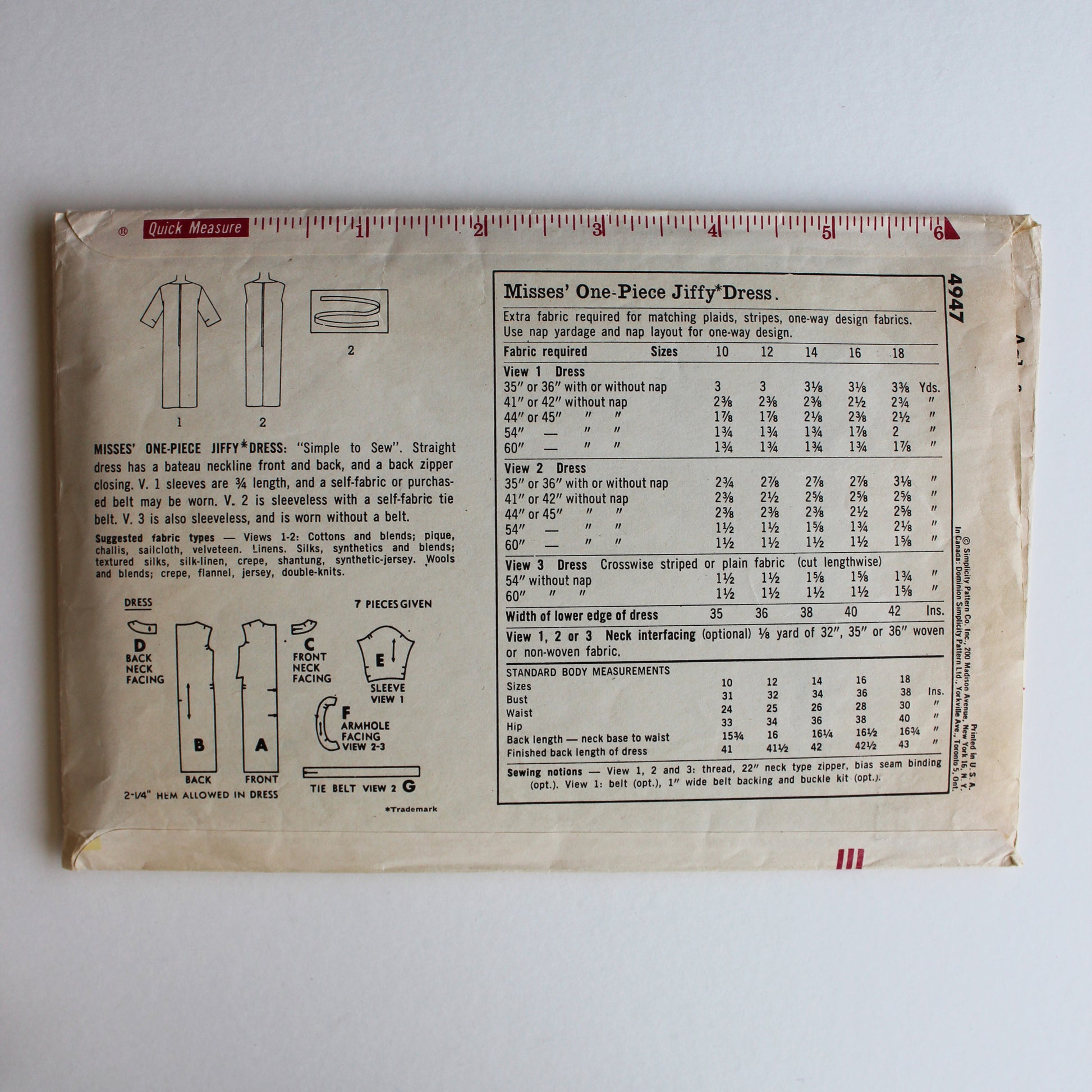 1960s Simplicity 4947 Sewing Pattern Misses Dress Size 16