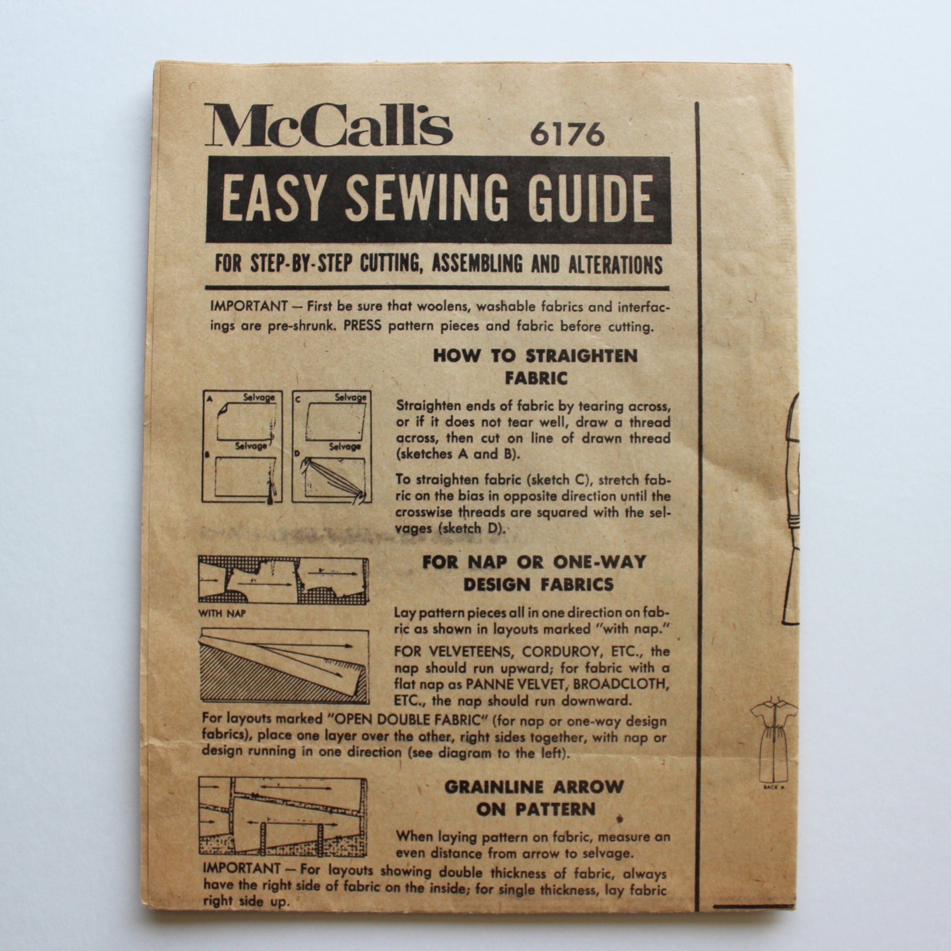 A General Note About Patterns: Depending on the age and storage conditions over the years, patterns may have discoloration and/or old paper odor. There may be wear, wrinkles and/or tears from handling and/or usage. Pattern pieces that have been cut and used may have pinholes, etc. Significant damage not visible in photos will be noted above.
