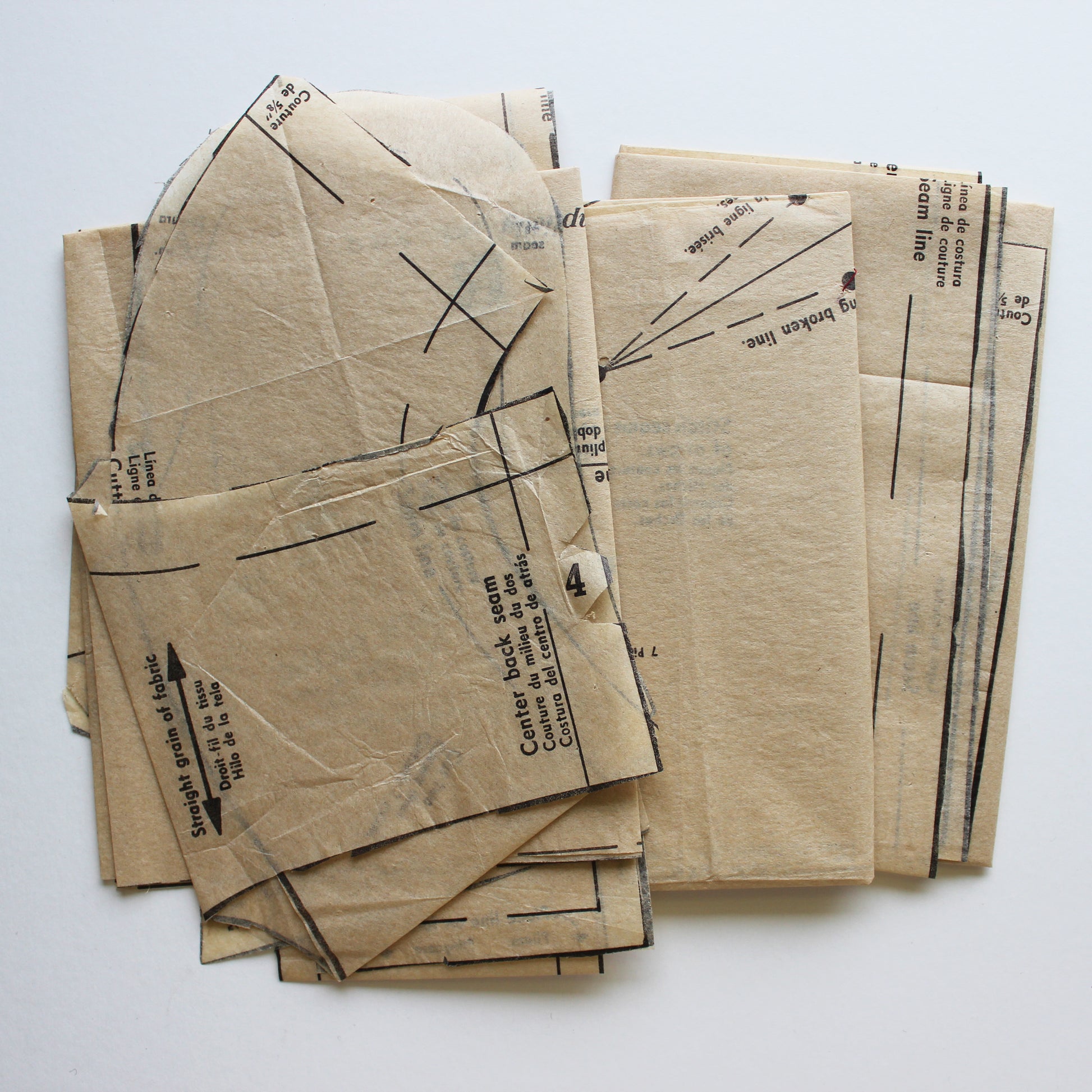 A General Note About Patterns: Depending on the age and storage conditions over the years, patterns may have discoloration and/or old paper odor. There may be wear, wrinkles and/or tears from handling and/or usage. Pattern pieces that have been cut and used may have pinholes, etc. Significant damage not visible in photos will be noted above.