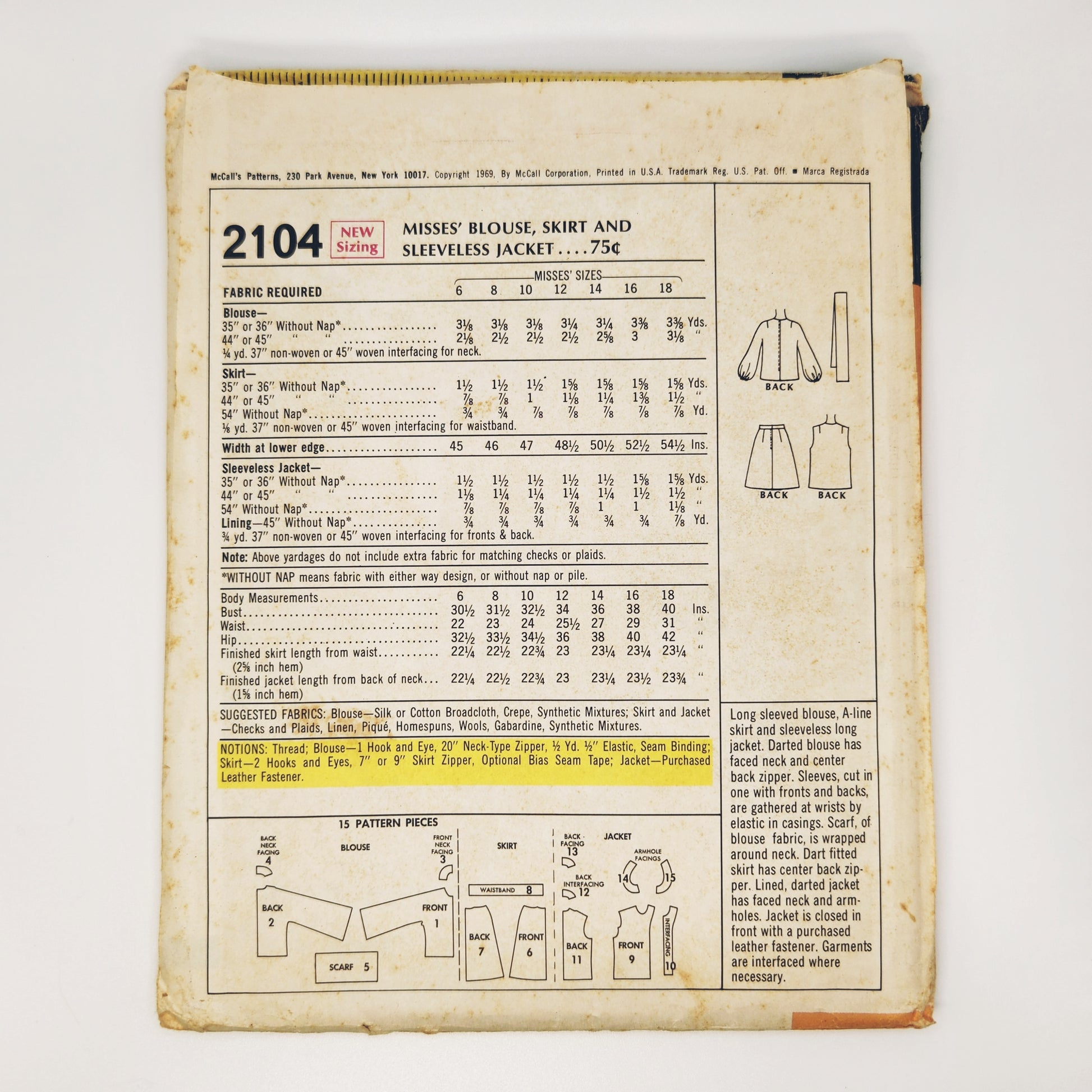 1969 McCall's 2104 Sewing Pattern Misses Blouse Skirt Jacket Size 18