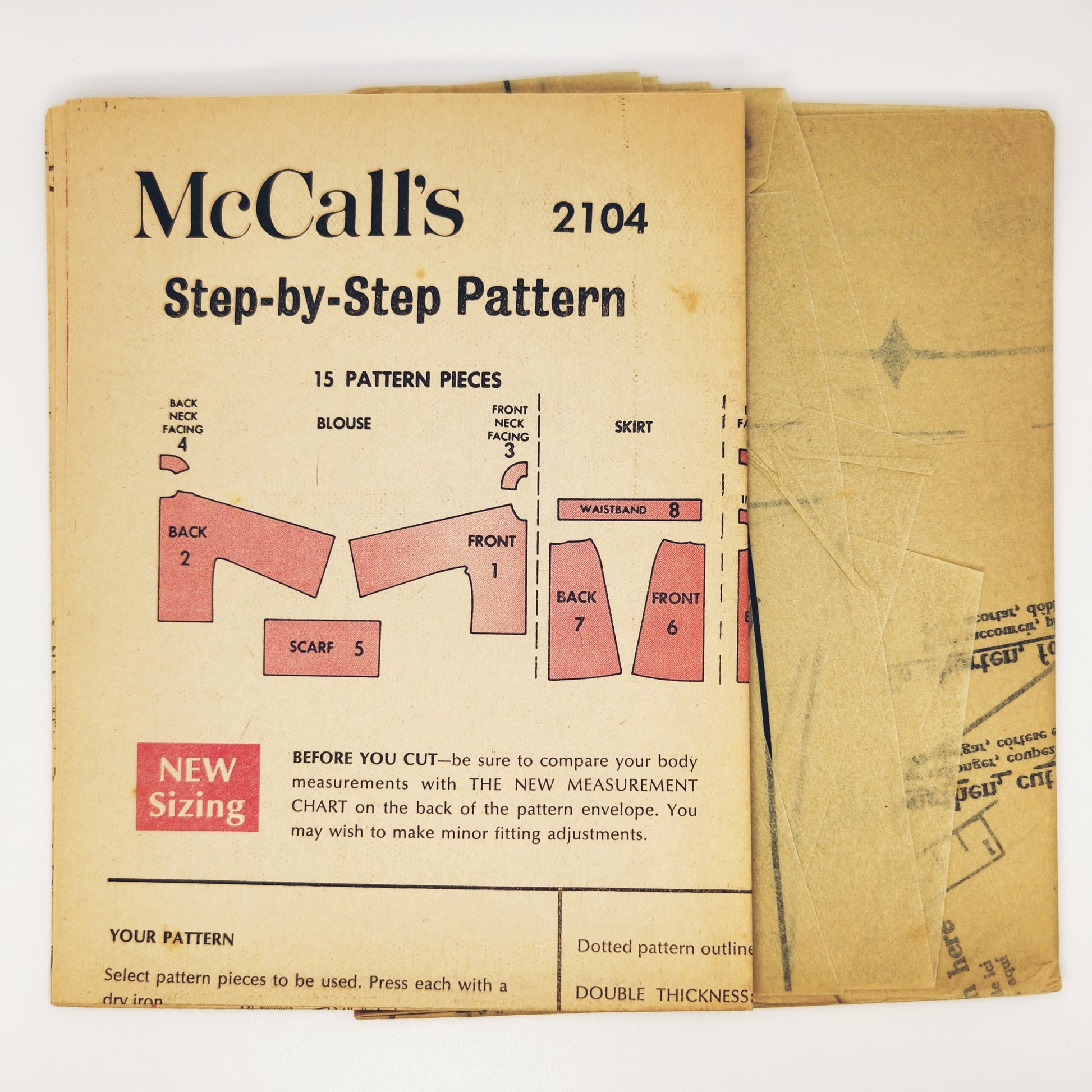 A General Note About Patterns: Depending on the age and storage conditions over the years, patterns may have discoloration and/or old paper odor. There may be wear, wrinkles and/or tears from handling and/or usage. Pattern pieces that have been cut and used may have pinholes, etc. Significant damage not visible in photos will be noted above.