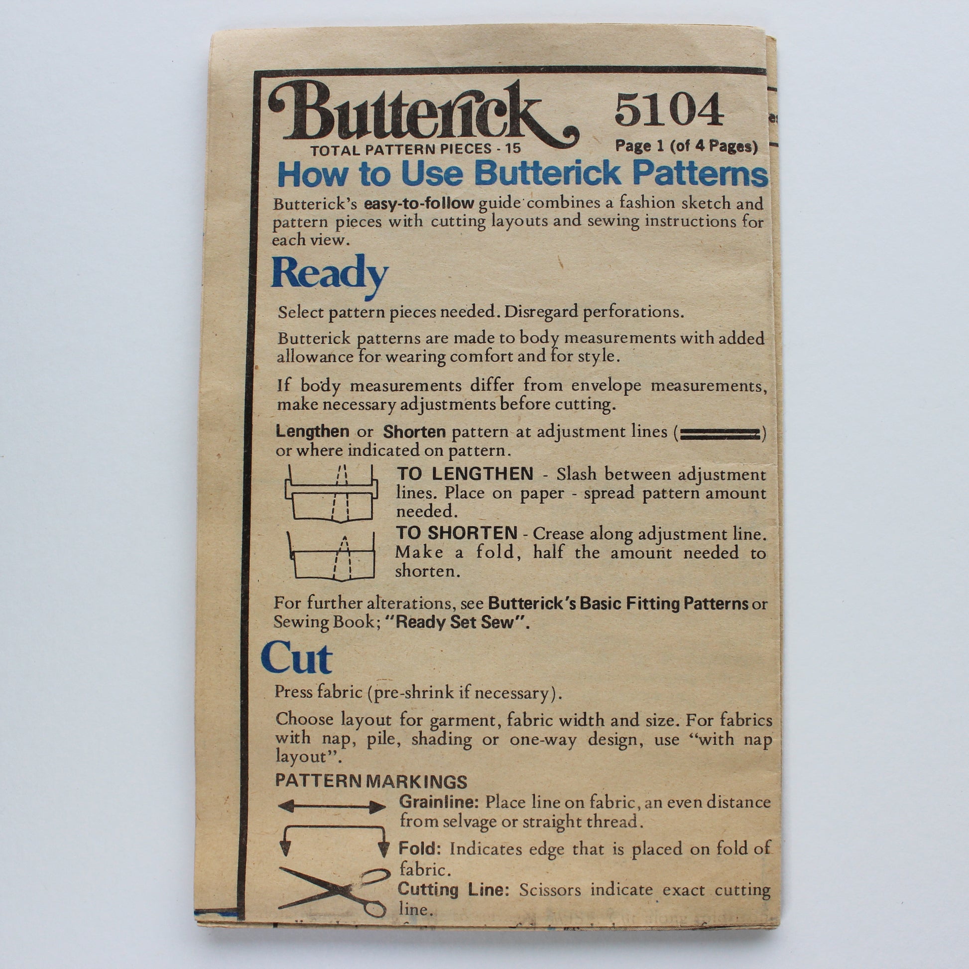 A General Note About Patterns: Depending on the age and storage conditions over the years, patterns may have discoloration and/or old paper odor. There may be wear, wrinkles and/or tears from handling and/or usage. Pattern pieces that have been cut and used may have pinholes, etc. Significant damage not visible in photos will be noted above.