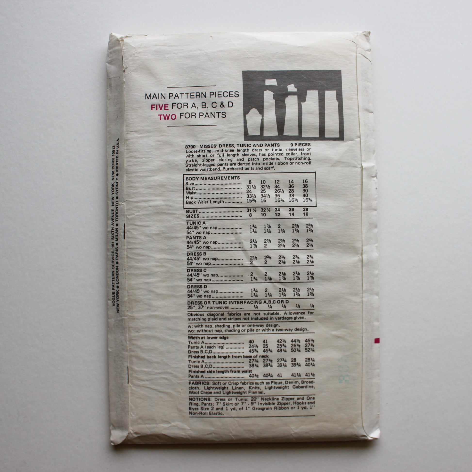 1970s Vogue 8790 Sewing Pattern Misses Dress Tunic Pants Size 12