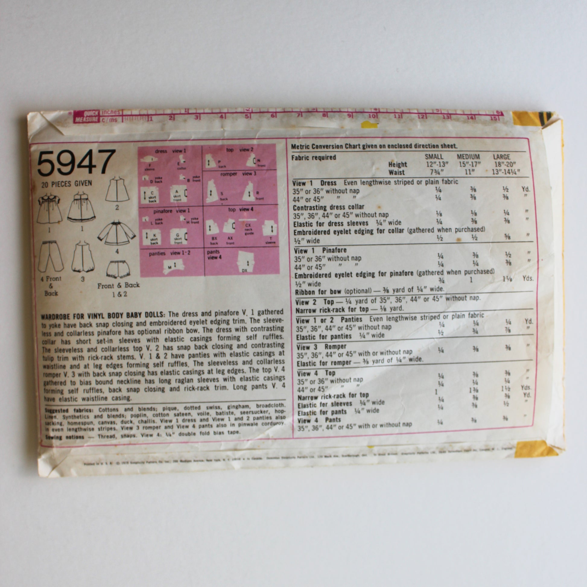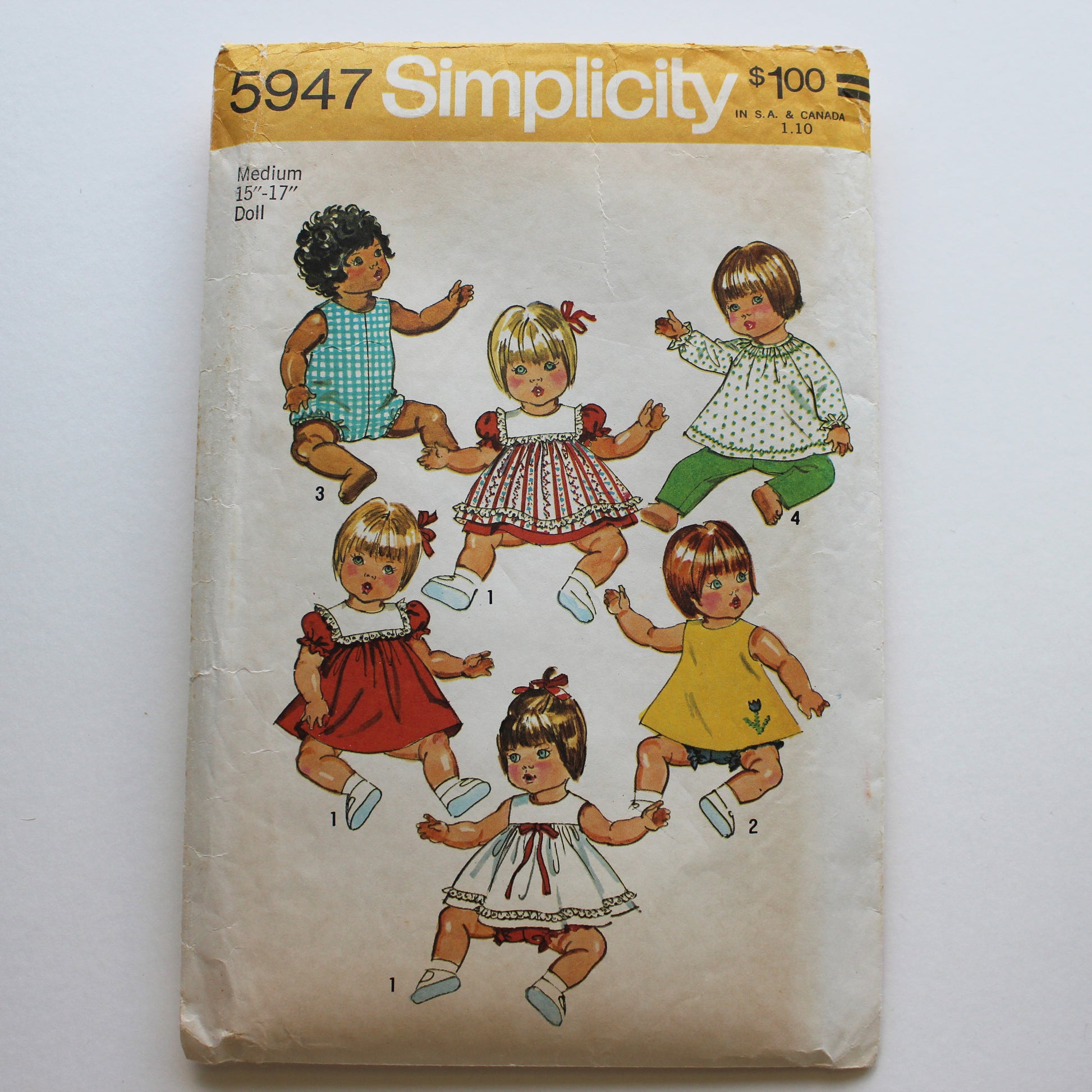 1973 Simplicity 5947 Sewing Pattern Doll Wardrobe Size Medium 15" - 17"